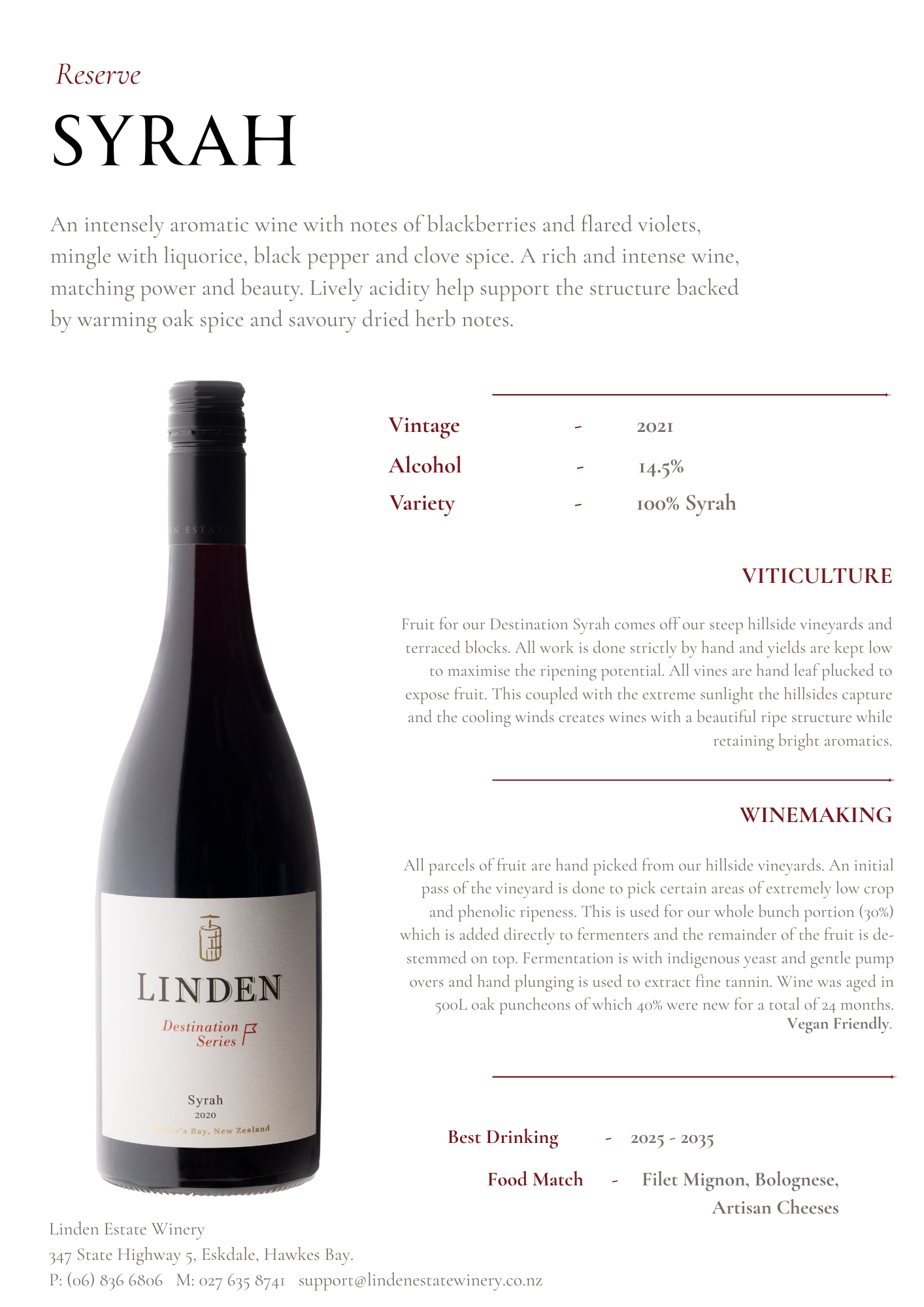 An inviting aroma of dark cherries, plums, dried herbs, violets, note of white pepper and subtle spice. Am engaging medium-to-full bodied palate celebrates those dark cherries, rich plums served with a balanced amount of natural fruit acidity. All wrapped in smooth tannins and deft oak, resulting in a nicely layered, textural wine with a lingering finish.