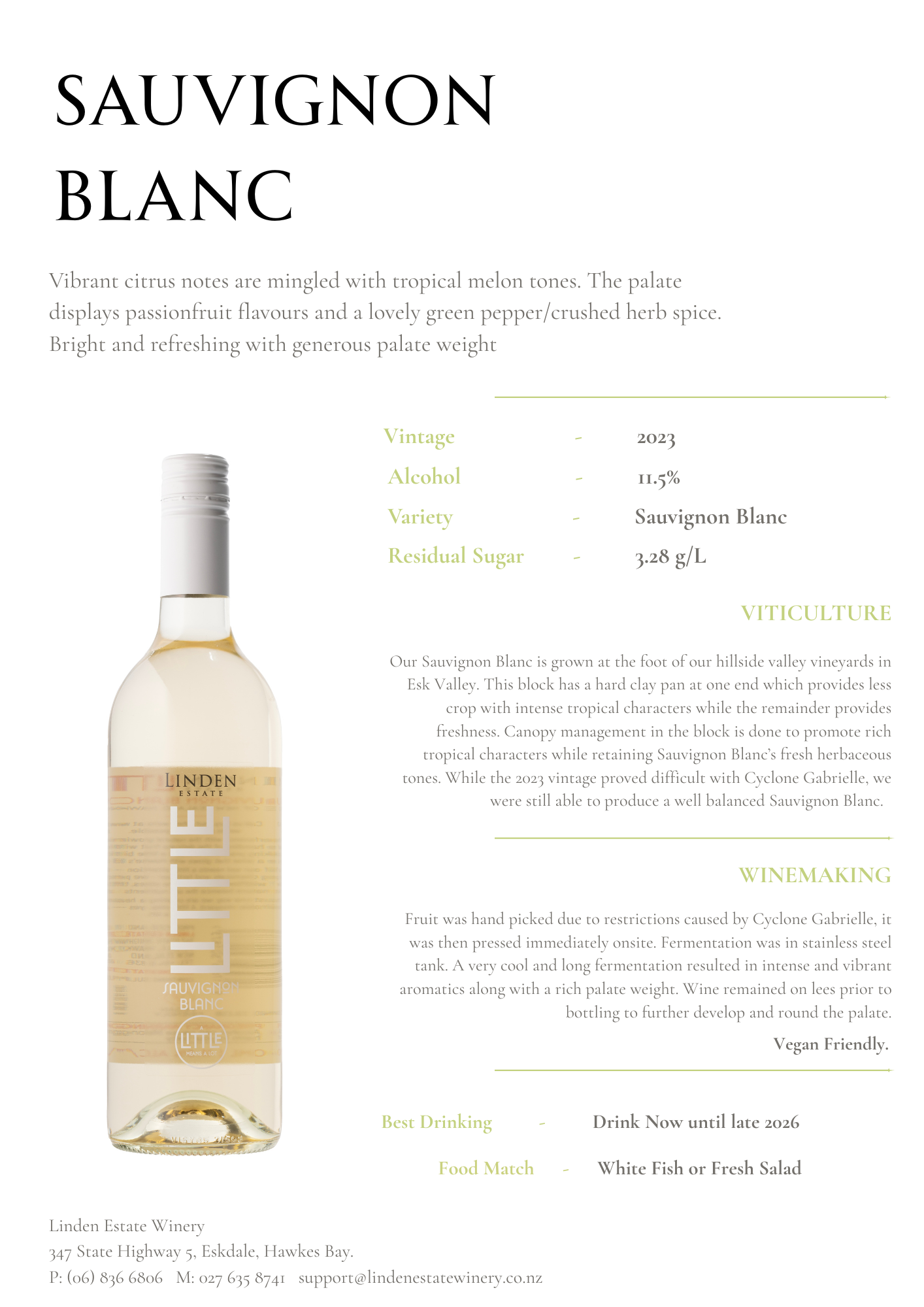 Vibrant citrus notes are mingled with tropical melon tones. The palate displays passionfruit flavours and a lovely green pepper/crushed herb spice. Bright and refreshing with generous palate weight